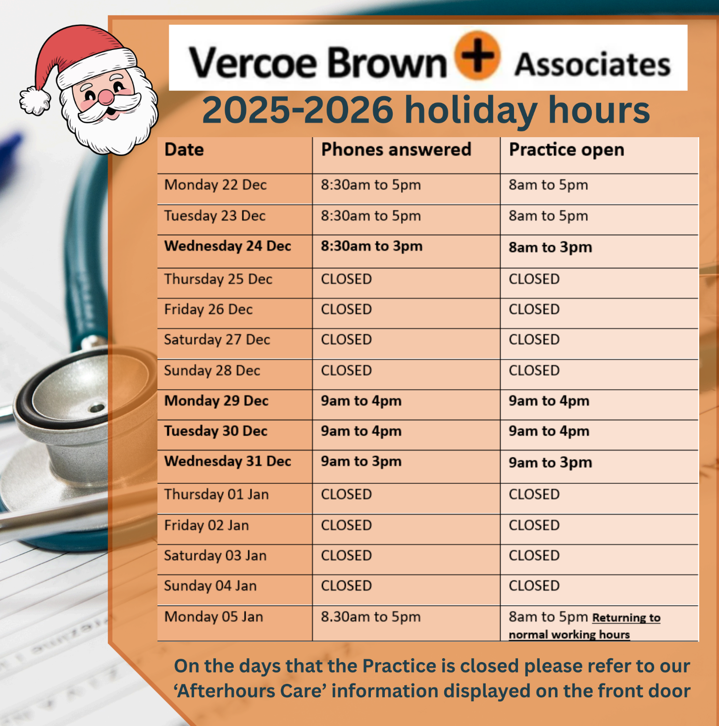 If you are enrolled with us, book your appointment now. If you are not enrolled with us, register with Vercoe Brown and Associates below.